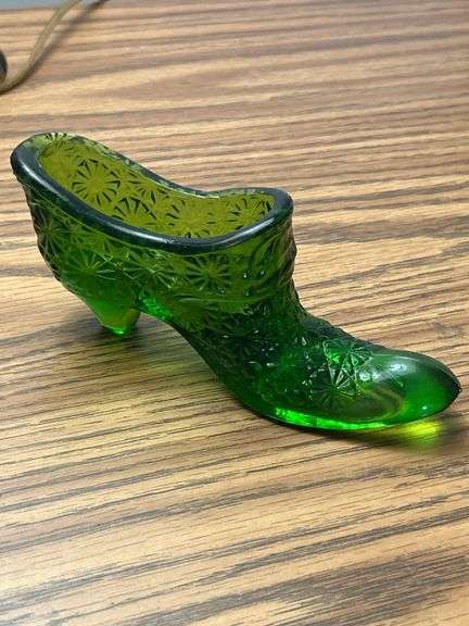 LOT 73 - Fenton Emerald Green Daisy and Button Glass Slipper